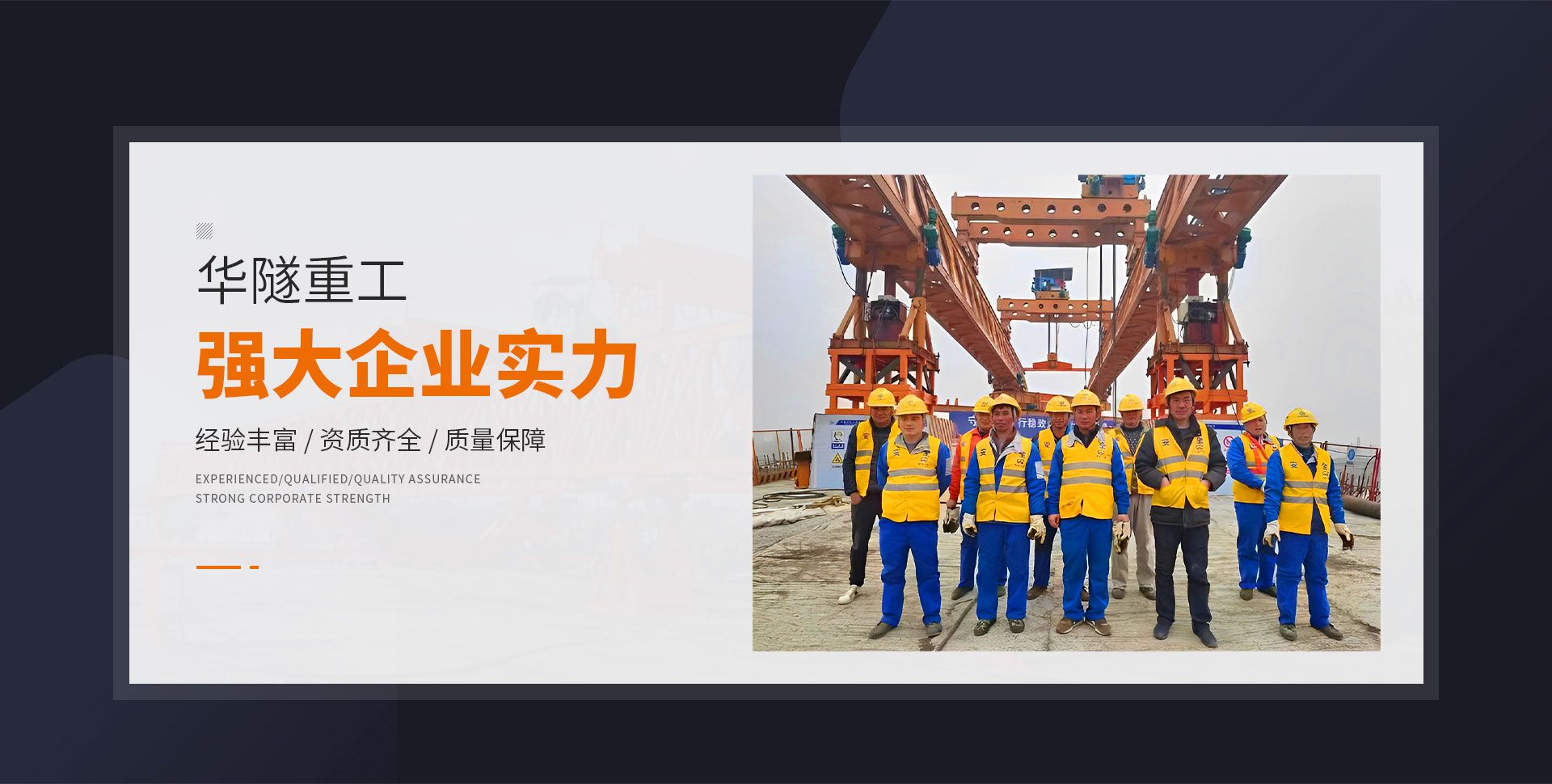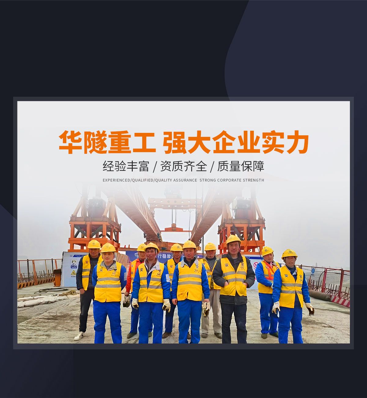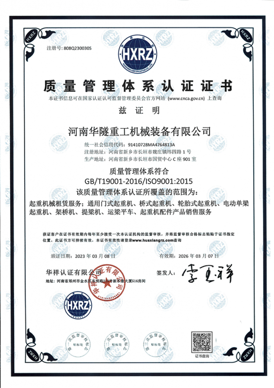 河南華隧重工機械裝備有限公司主要從事通用門式起重機、橋式起重機、電動單梁起重機,輪胎式起重機、架橋機、提梁機、遠梁平車、鋼絲繩電動萌蘆、卷揚機、起重配件制造、銷售:起重機械租賃、安裝和維修,起重設備園收,機械設備維修,鋼結構工程承包,橋梁工程及技術咨淘服務,銷售五金制品、機電設備:建設工程監理,建設工程設計,各類工程建設活動,建筑勞務分包,建筑物折除作業,施工作業,工程管理服務,土石方工程施工,裝如發運。  公司已通過IS0國際質量、環境、健康與安全三合一標準認證,特種設備制造許可證和特種設備安裝改造維修許可證。擁有完熟的質量管理體系。嚴格的管理制度,強大的生產能力和先進的檢測手段,在保證產品質量的同時,也具備了極強的市場競爭力。  公司堅持科技創新為理念,產品質量為核心,注重信譽,建立了減信可靠、快捷、思速。便利周到的售后服務網絡?! ∥覀儞碛械募夹g專家和技術服務隊伍為客戶提供充善的售前技術支持和全天候的售后服務體系,讓您無后顧之憂,享受一站式的超值服務?!  叭A隧重工,伴您成功“是華隧重工永遠的宗指,真被的希望與各界朋友攜手并進。共創輝準!